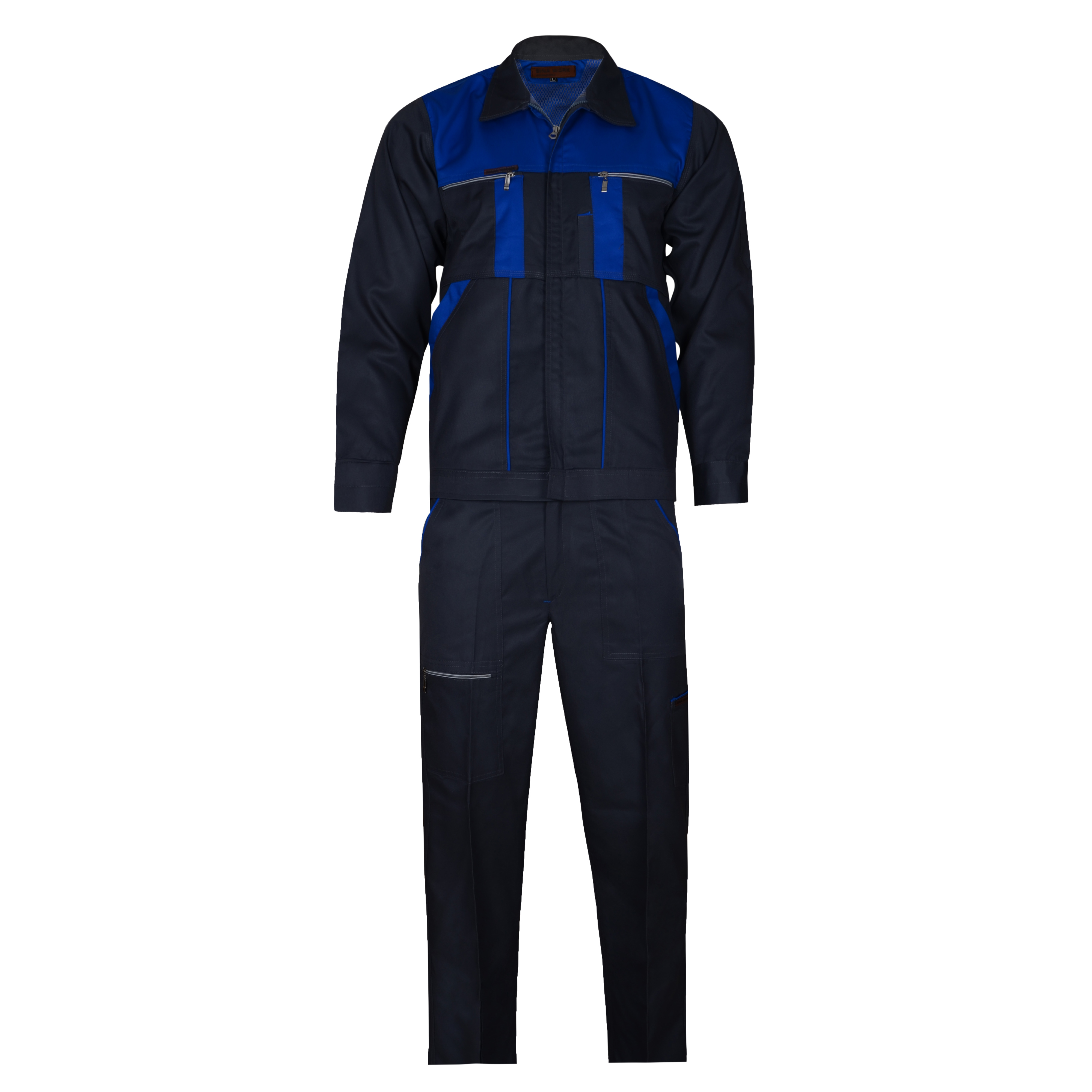 لباس کار ضد چروک، رنگ ثابت، بدون آبرفت، خوش فرم و مقاوم در برابر شست و شو است.